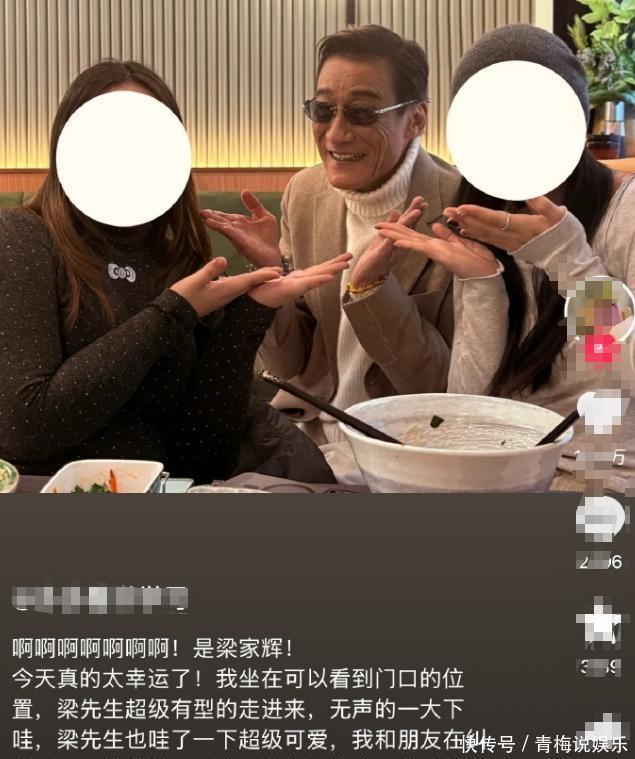 就在1月下旬,有粉丝在餐厅吃饭的时候看到梁家辉走了进来,不由得做出了惊叹的表情,无声的“哇”了一下。然后梁老师就看了过来,也跟着“哇”了一下,在粉丝眼中超级可爱,这时候粉丝和朋友都坐不住了。